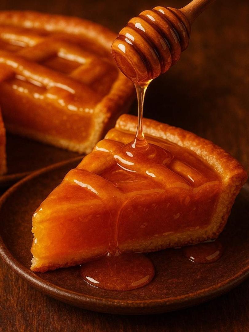 Imagine golden honey melting into warm pie crust, topped with creamy vanilla ice cream and soft spices.